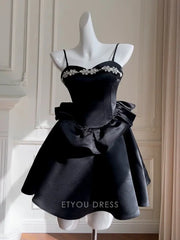 A Line Spaghetti Straps Cute Black Satin Homecoming Dresses formal dresses Bridesmaid Dresses evening gown Prom Dress With Beads