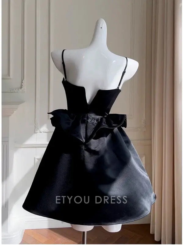 A Line Spaghetti Straps Cute Black Satin Homecoming Dresses formal dresses Bridesmaid Dresses evening gown Prom Dress With Beads - US 2 / UK 6 / EU 32