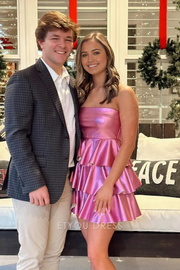 A-line Strapless Tiered Pink Short formal dresses Bridesmaid Dresses evening gown Prom Dress Homecoming Dress