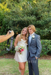 A Line V-Neck Ruffle White Short Homecoming Dress formal dresses Bridesmaid Dresses evening gown Prom Dress