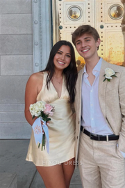 A Line V Neck Yellow Homecoming Dress Short formal dresses Bridesmaid Dresses evening gown Prom Dress