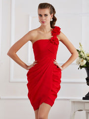 Sheath/Column One-Shoulder Sleeveless Hand-Made Flower Short Chiffon Homecoming Dresses