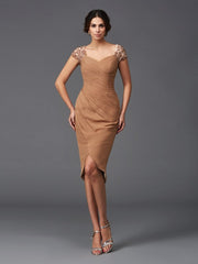 Sheath/Column Sweetheart Applique Short Sleeves High Low Chiffon Cocktail Dresses