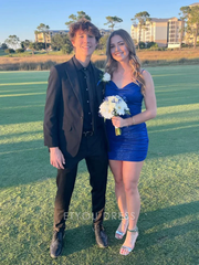 Sheath Sparkling Spaghetti Straps Blue Short formal dresses Bridesmaid Dresses evening gown Prom Dress Homecoming Dress