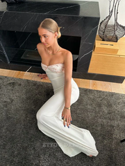Sheath Strapless White Long formal dresses Bridesmaid Dresses evening gown Prom Dress