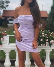 Tight Satin Ruched Short Homecoming Dresses