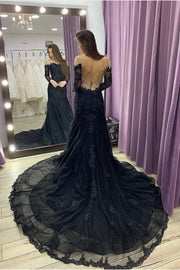 Glamorous Mermaid Off-the-Shoulder Lace Black Court-Train Party Dress