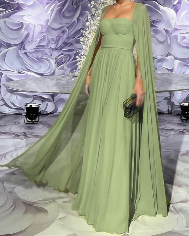 A-line Chiffon Corset Prom Dresses With Cape - US 2 / UK 6 / EU 32