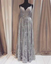 A-line Long Tulle Bridesmaid Dresses Lace Appliques Prom Dresses