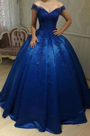 A line Off Shoulder Lace Long Evening Prom Dresses