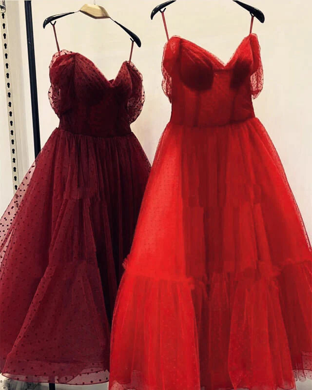 A-line Off The Shoulder Tulle Midi Prom Corset Dress Prom Dresses - US 2 / UK 6 / EU 32 / Red