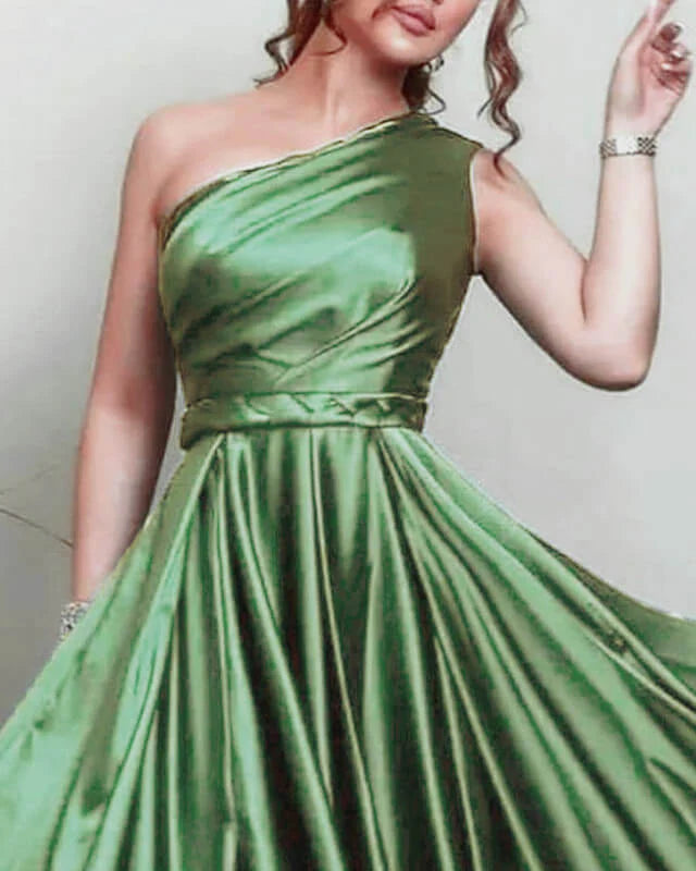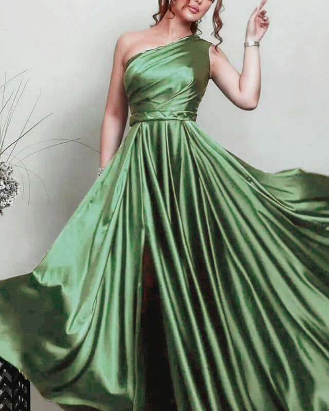 A-line One Shoulder Satin Split Bridesmaid Dresses Prom Dresses