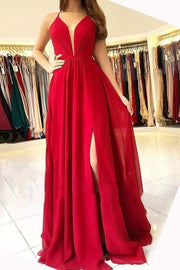 A-line Sexy Chiffon Halter Side Slit Long Evening Prom Dresses