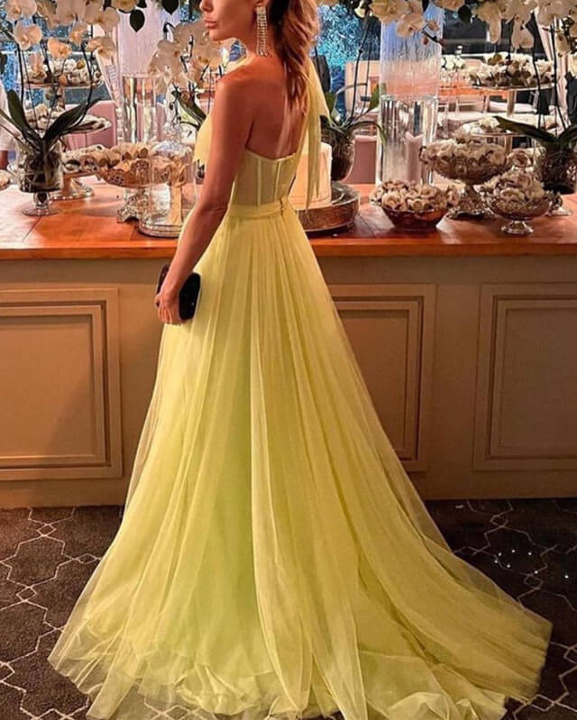 A-line Tulle Corset One Shoulder Slit Dress Prom Dresses