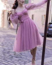 A-line Tulle Long Sleeve Homecoming Dresses Prom Dresses