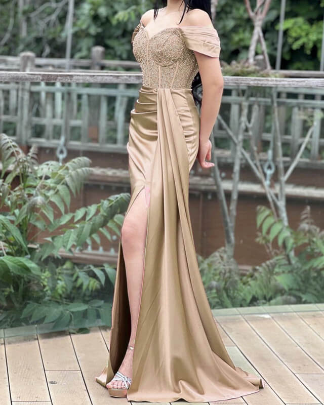 Mermaid Lace Corset Slit Satin Prom Dresses