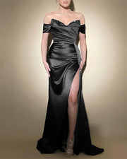 Mermaid Satin Off Shoulder Slit Prom Dresses