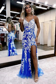 Mermaid Spaghetti Straps Long Prom Dress with Appliques