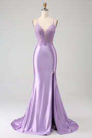 Mermaid Spaghetti Straps Long Prom Dress with Appliques Slit