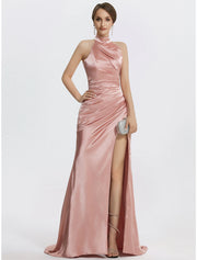 Mermaid / Trumpet Prom Dresses High Waisted Dress Evening Party Black Tie Floor Length Sleeveless Halter Neck Satin with Ruched