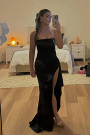 etyou's Elevate your glamorous allure with this black strapless satin mermaid gown. It features luxurious satin fabric with a strapless neckline for opulent charm, a high slit and mermaid silhouette for refined elegance, and a sleek design that adds a touch of bold flair. The classic black hue ensures a captivating finish, making it perfect for formal events, proms, or any occasion where you want to embrace timeless luxury with polished, show-stopping style.