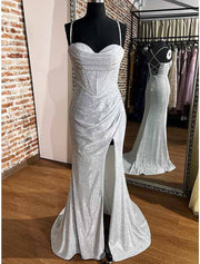 Sheath / Column Prom Dresses Corsets Dress Wedding Guest Wedding Party Sweep / Brush Train Sleeveless Cowl Neck Fall Wedding Reception Sequined with Glitter Ruched Slit