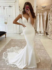 Sheath/Column Stretch Crepe Lace V-neck Sleeveless Sweep/Brush Train Wedding Dresses - US 2 / UK 6 / EU 32