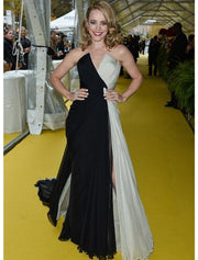 Sheath / Column White Party Wear Formal Evening Dress Strapless Sleeveless Sweep / Brush Train Polyester with Slit - Black / US 2 / UK 6 / EU 32