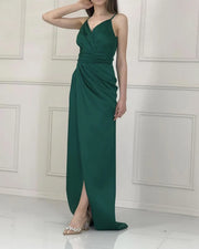 Sheath Pleated V Neck Bridesmaid Dresses With Split