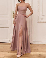 Spaghetti Straps Long Split Bridesmaid Dresses Prom Dresses
