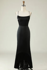 Spaghetti Straps Satin Prom Dress with Fringes - US 2 / UK 6 / EU 32
