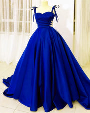 Sweetheart Straps Ball Gown Satin Prom Dresses With Bow