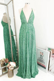 V Neck Sequin Open Back Prom Dresses - US 2 / UK 6 / EU 32