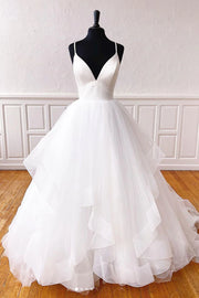 V neck tulle long Wedding Dresses
