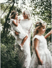 Beach Boho Wedding Dresses Sheath / Column High Neck Long Sleeve Court Train Lace Outdoor Bridal Gowns With Appliques Solid Color Summer Fall Wedding Party - US 2 / UK 6 / EU 32