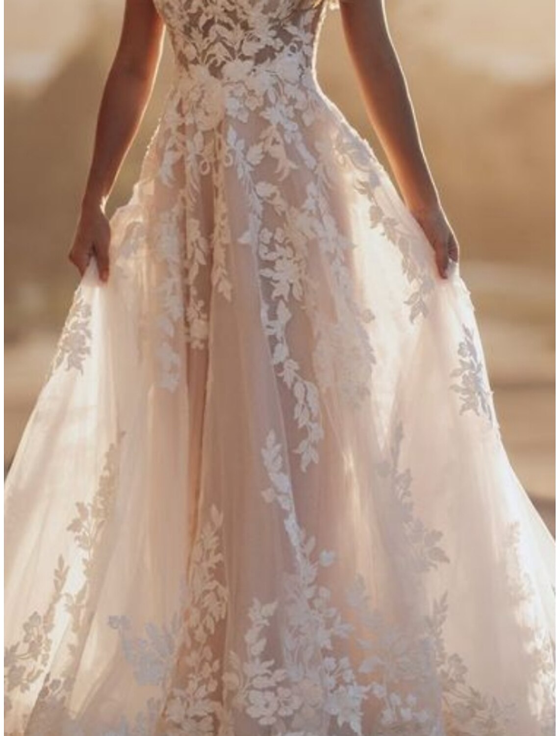 Beach Formal Wedding Dresses A-Line Square Neck Sleeveless Sweep / Brush Train Lace Bridal Gowns With Pleats Solid Color - US 2 / UK 6 / EU 32