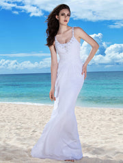 Wholesa  Beach Wedding Dresses Sheath / Column Spaghetti Strap Sleeveless Floor Length Chiffon Bridal Gowns With Ruched Beading