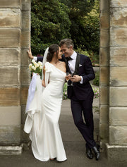 Boho Wedding Dresses Mermaid One Shoulder Sleeveless Court Train Stretch Fabric Bridal Gowns With Bow(s) - US 2 / UK 6 / EU 32