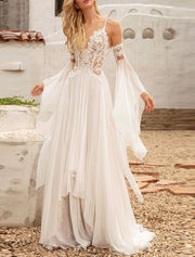 Open Back Little White Dresses Wedding Dresses A-Line Camisole Sleeveless Asymmetrical Chiffon Bridal Gowns With Embroidery Solid Color - US 2 / UK 6 / EU 32
