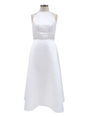 Reception Little White Dresses Wedding Dresses A-Line Halter Sleeveless Tea Length Satin Bridal Gowns With Solid Color