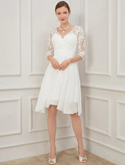 Reception Little White Dresses Wedding Dresses A-Line V Neck Half Sleeve Knee Length Chiffon Bridal Gowns With Draping Appliques - US 2 / UK 6 / EU 32