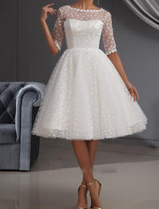 Reception Vintage 1940s / 1950s Simple Wedding Dresses Wedding Dresses A-Line V Neck Half Sleeve Tea Length Lace Bridal Gowns With Appliques 2024 Summer Wedding - US 2 / UK 6 / EU 32