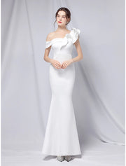 Mermaid / Trumpet Evening Gown Empire Dress Wedding Guest Floor Length Short Sleeve One Shoulder Stretch Satin with Ruffles