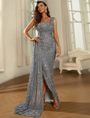 Mermaid / Trumpet Wedding Guest Dresses Sparkle & Shine Dress Formal Evening Party Sweep / Brush Train Sleeveless One Shoulder Sequined with Sequin