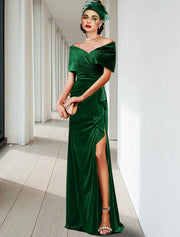 Sheath / Column Evening Gown Elegant Dress Wedding Guest Cocktail Party Floor Length Sleeveless V Neck Velvet with Pleats Ruffles - Dark Green / US 2 / UK 6 / EU 32