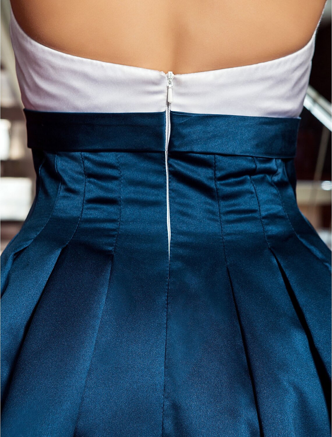 A-Line Chic & Modern Color Block Minimalist Formal Evening Black Tie Gala Dress Strapless Backless Sleeveless Asymmetrical Satin with Bow(s) Pleats - US 2 / UK 6 / EU 32