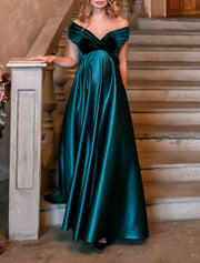 A-Line Evening Gown Maternity Dress Red Green Dress Formal Floor Length Short Sleeve V Neck Charmeuse with Ruched Pure Color