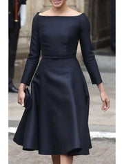 A-Line Mother of the Bride Dress Elegant Simple Jewel Neck Tea Length Knee Length Taffeta Long Sleeve with Sash / Ribbon Solid Color - US 2 / UK 6 / EU 32