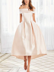 Ball Gown Elegant Vintage Engagement Prom Dress Off Shoulder Short Sleeve Ankle Length Satin with Sleek