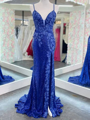 Mermaid Backless Evening Dresses Elegant Foral Applique Prom Dresses - As picture1 / US 2 / UK 6 / EU 32